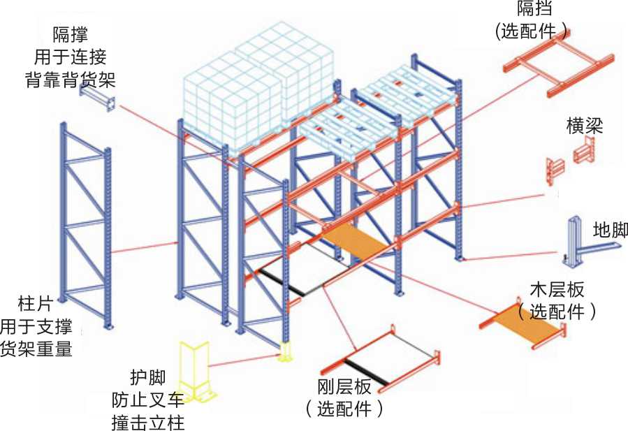 重型橫梁式貨架式是使用最普遍的貨架形式,需配合叉車使用,叉車可以自由存取任何一個位置的貨物;具有結構簡單、操作方便,存取性好,安全可靠等特點;重型橫梁式貨架可以加載不同配件。如擱檔、倉儲籠、鋼層板、木層板、網格板等,以滿足不同的使用需要。